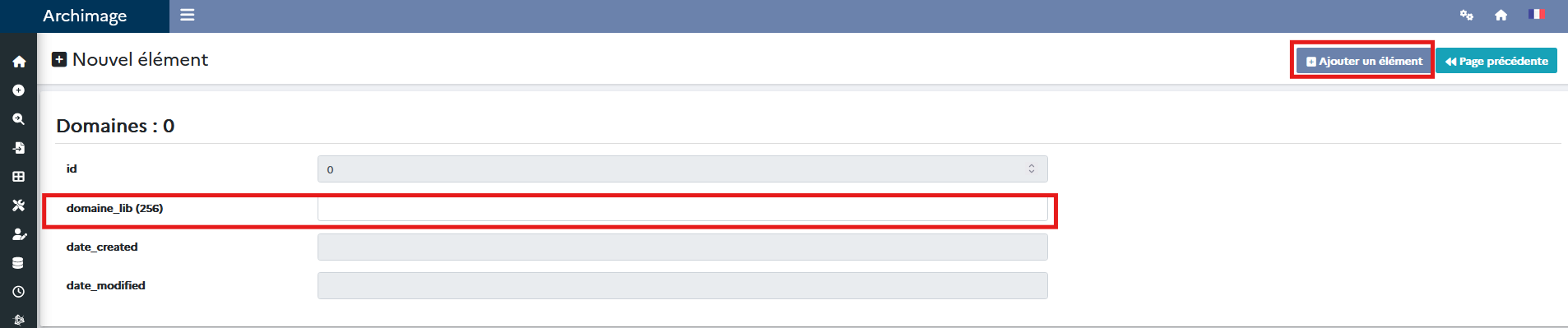 4. Remplir la fiche et cliquer de nouveau sur Ajouter un élément pour enregistrer votre travail.