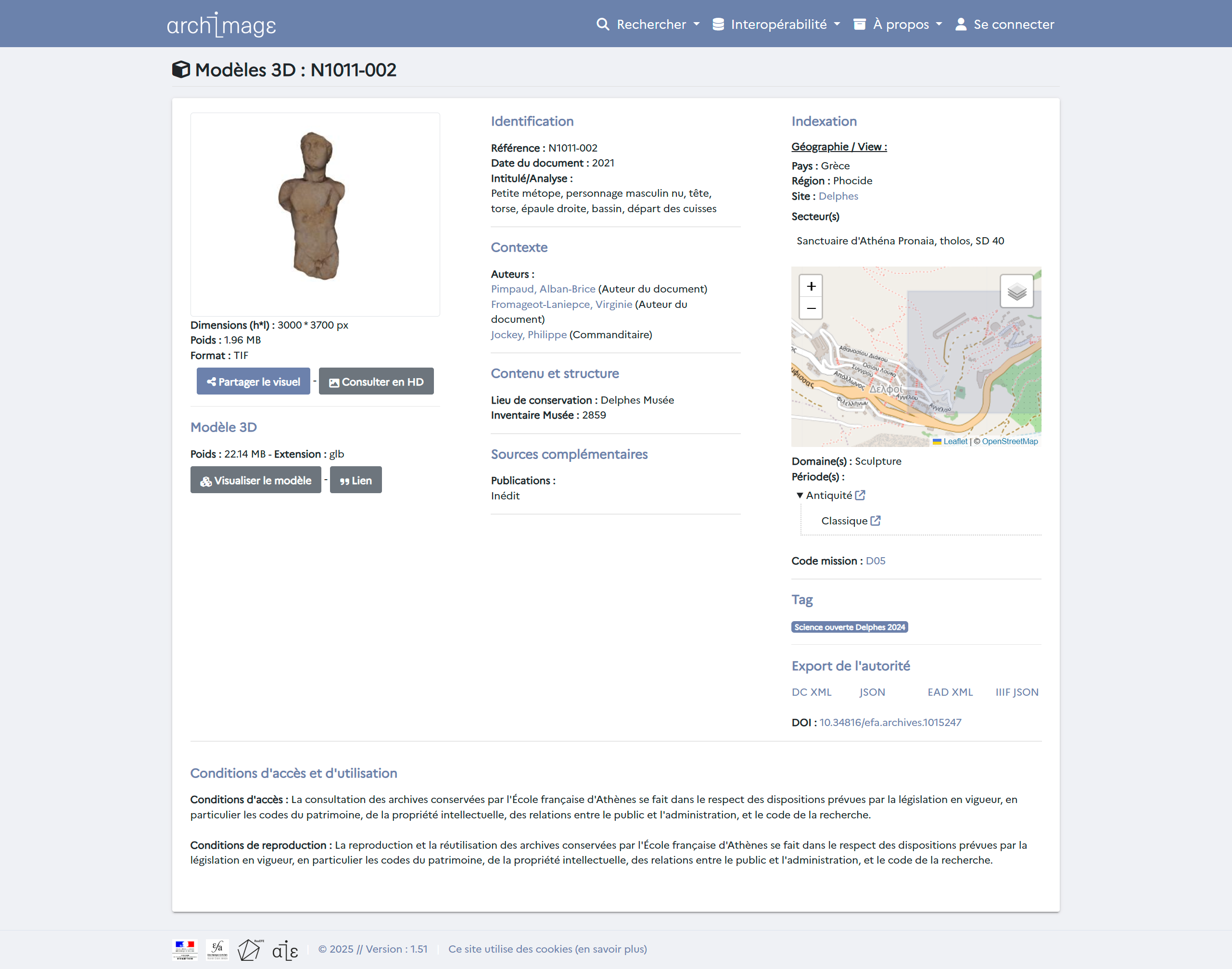 Les notices contiennent également des informations sur les objets ou monuments modélisés en 3D dont :
