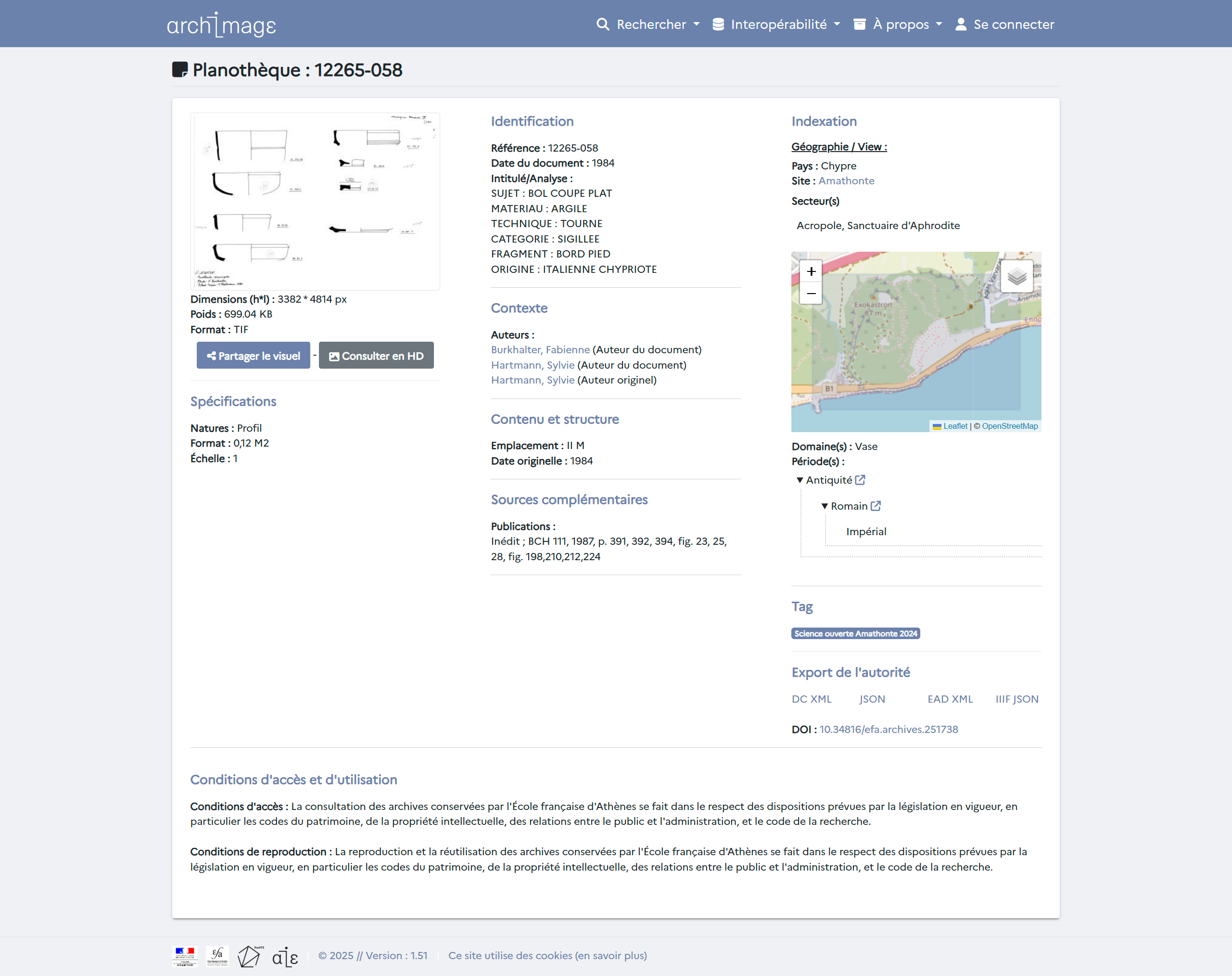 Chaque notice possède un DOI (Digital Object Identifier) permettant de la partager et de la citer.