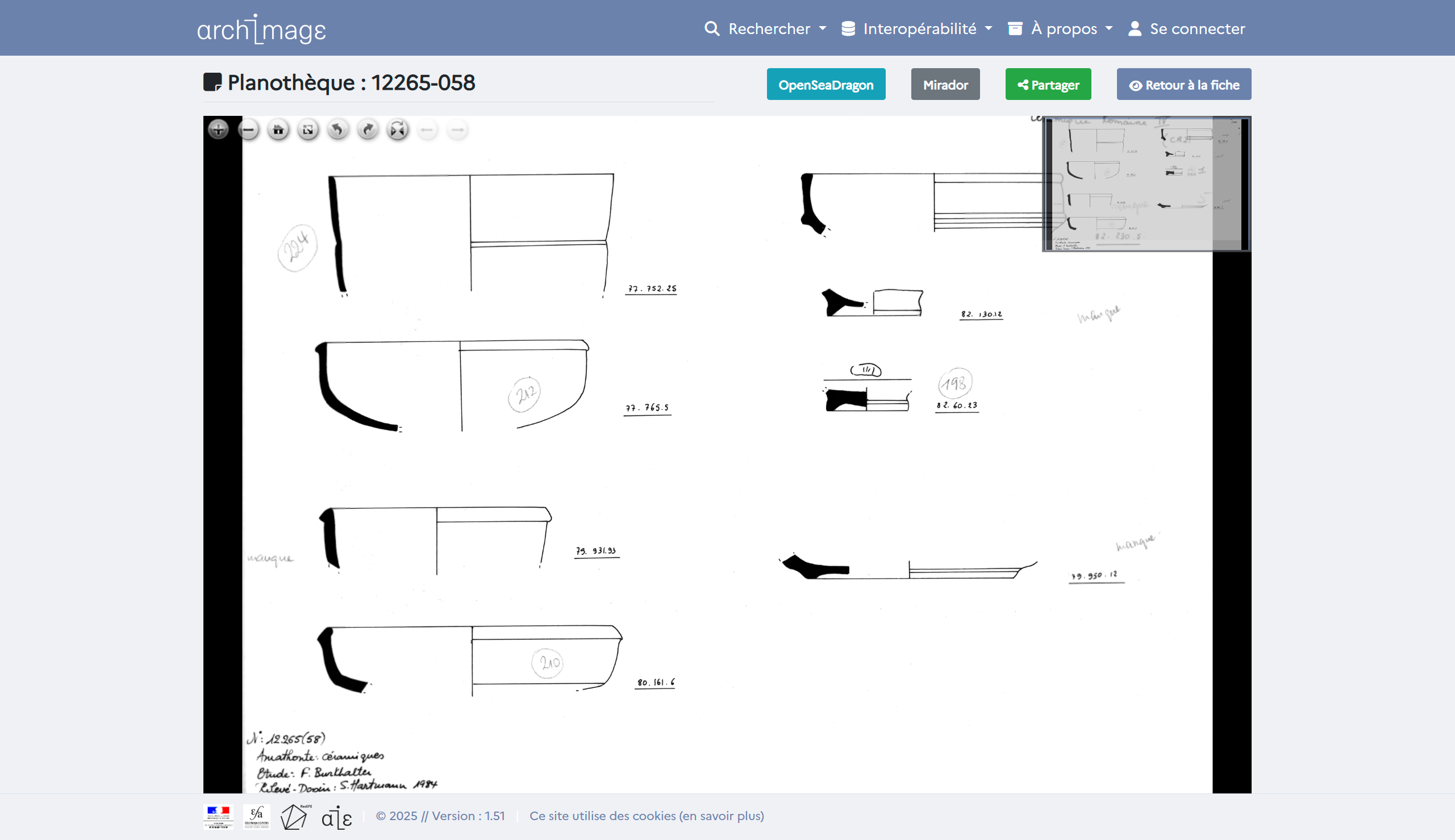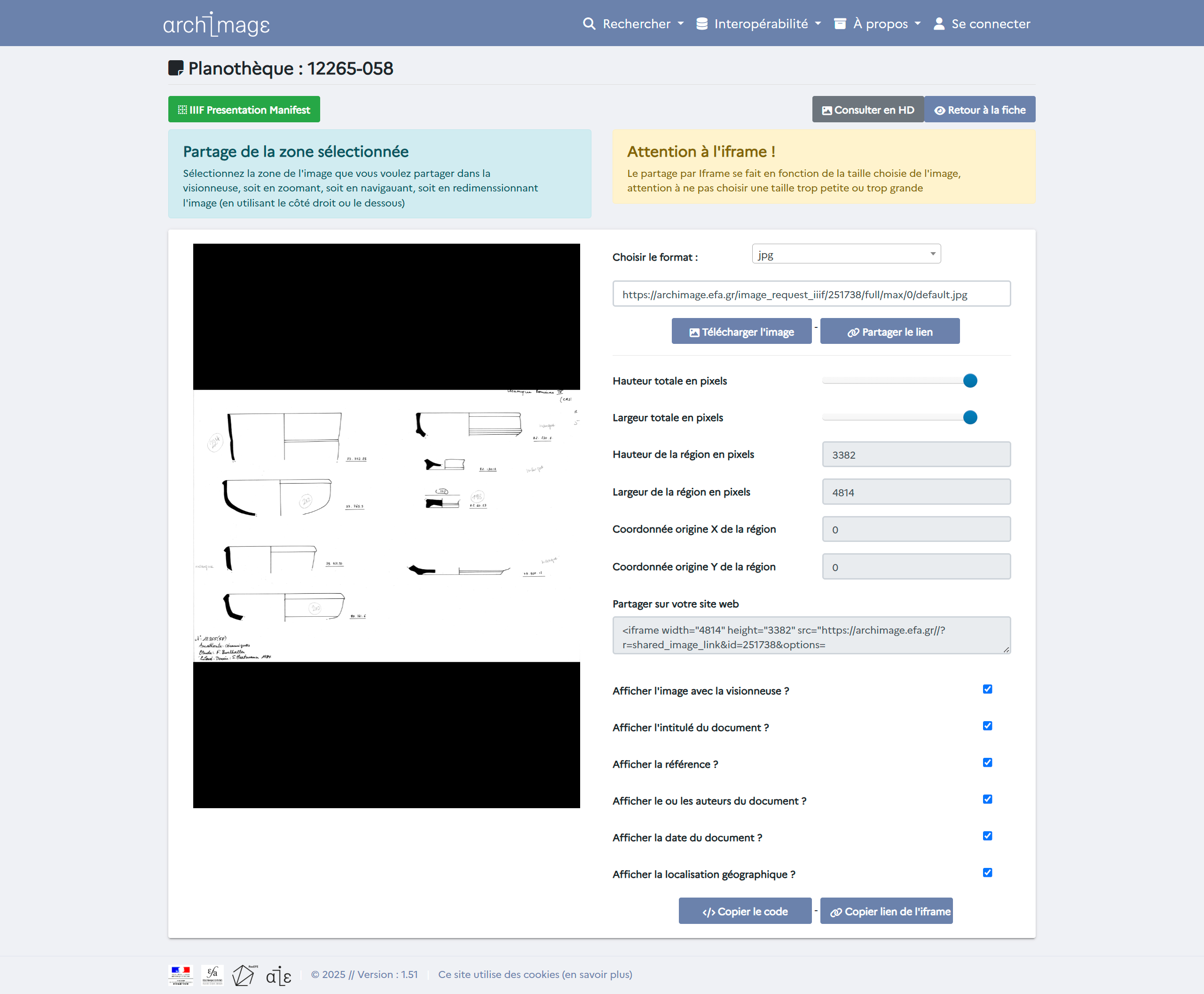 Un bouton « Partager le visuel » permet de télécharger la numérisation ou d’obtenir un lien de partage configurable.