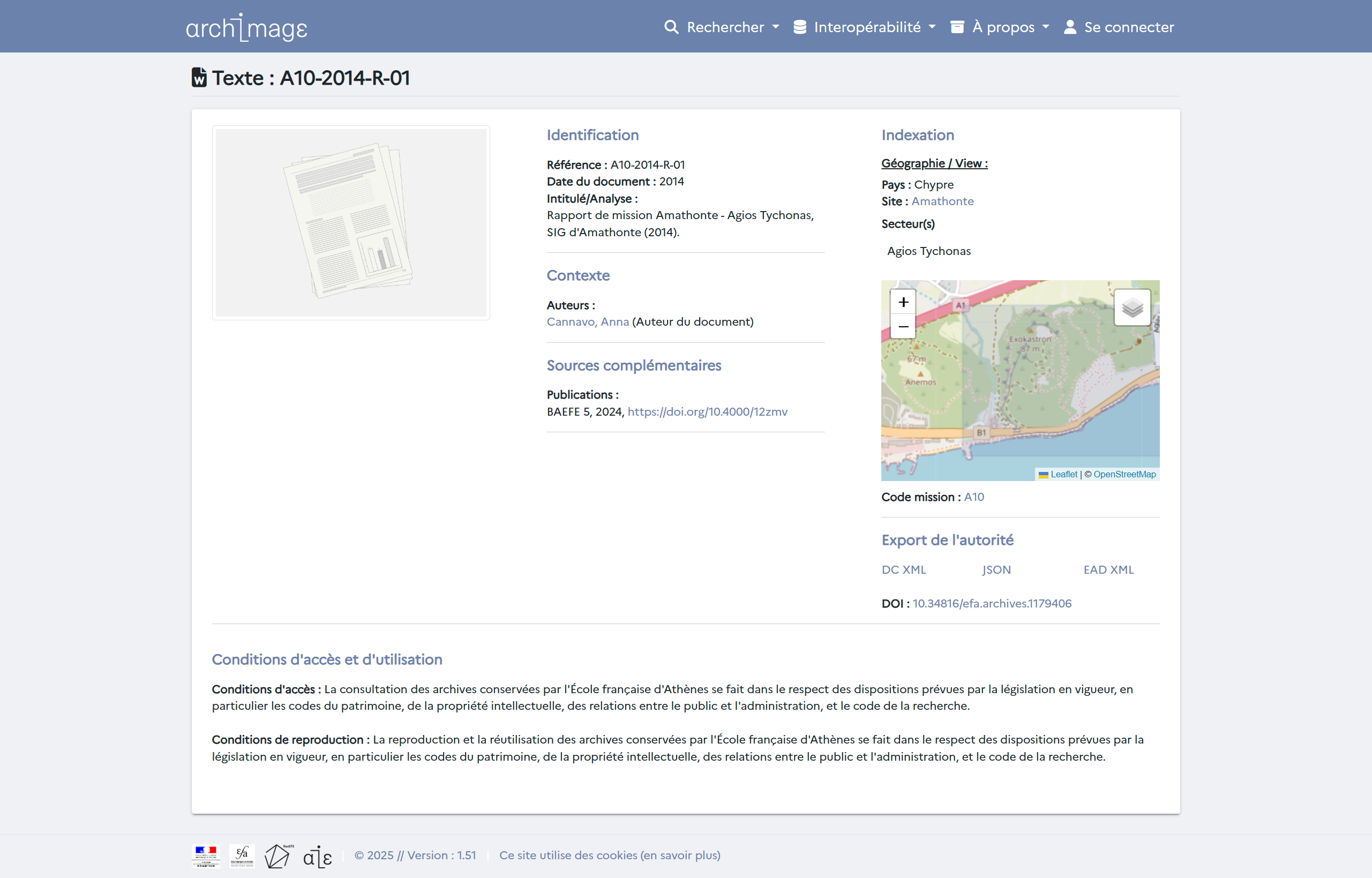 Chaque notice possède un DOI (Digital Object Identifier) permettant de la partager et de la citer.
